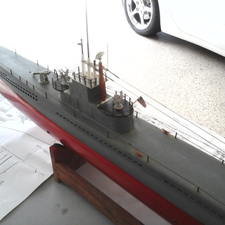I will take some detail pix of the hull, glassed in bulkheads and watertight electrical compartment. Shafts are true and sealed. Both diving plans are complete with knuckles. Both motors turn freely. It does need to be detailed and updated.