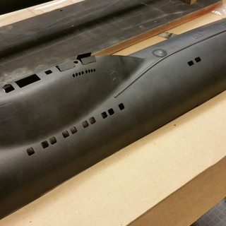 When I received it, the project had been started and the rear appendages and control surfaces were in place, the hull was fiberglass together, and some of the sail detail was completed.